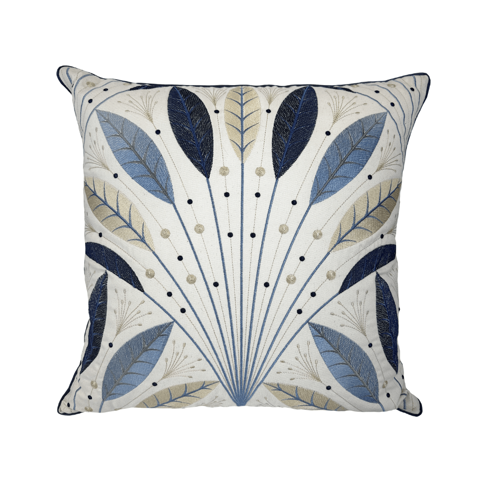 Com 52x52cm, é ideal para sofás, poltronas e camas, garantindo charme e aconchego ao ambiente. O bordado botânico em azul adiciona delicadeza e estilo, enquanto o acabamento em cordão valoriza ainda mais a peça.