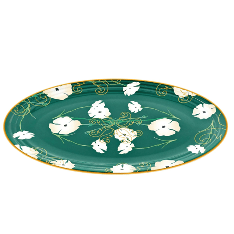 Feita em melamina de alta qualidade, a bandeja combina resistência e leveza, garantindo durabilidade e facilidade de manuseio. Seu design oval e acabamento moderno conferem um visual elegante e contemporâneo, capaz de complementar qualquer mesa com estilo.