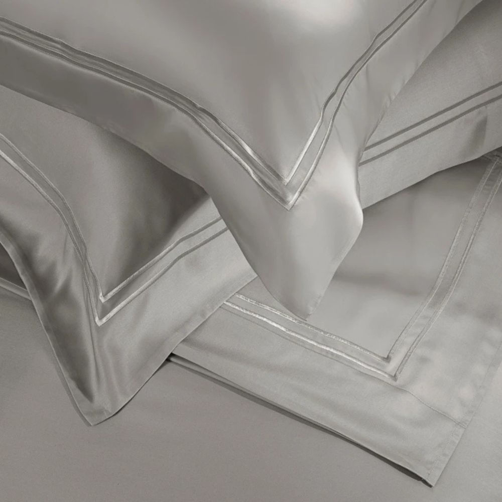 O design da linha Duo destaca-se pela sofisticação do acabamento em festonê duplo duas linhas bordadas que adorna as abas das fronhas e a vira do sobre-lençol. A tonalidade Fend é uma cor neutra, moderna e versátil, perfeita para criar composições elegantes e atemporais na sua cama posta.