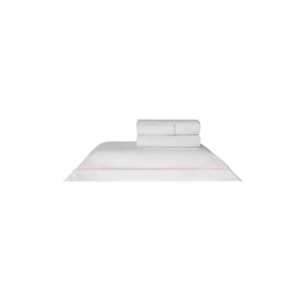 JOGO DE CAMA FESTONE CLASSICO CASAL BRANCO/ROSE 200 FIOS 220X250CM KACYUMARA