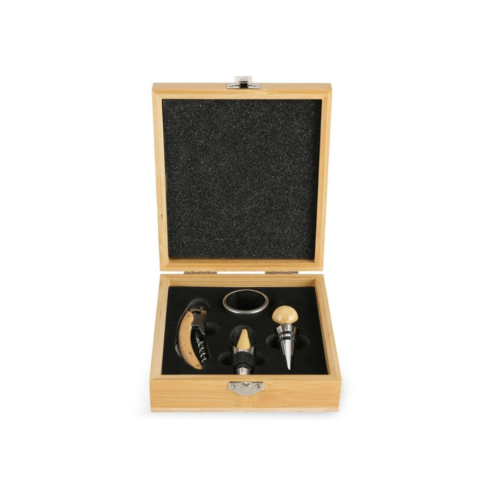 KIT VINHO DE INOX E MADEIRA NATURAL 4 PEÇAS - BTC