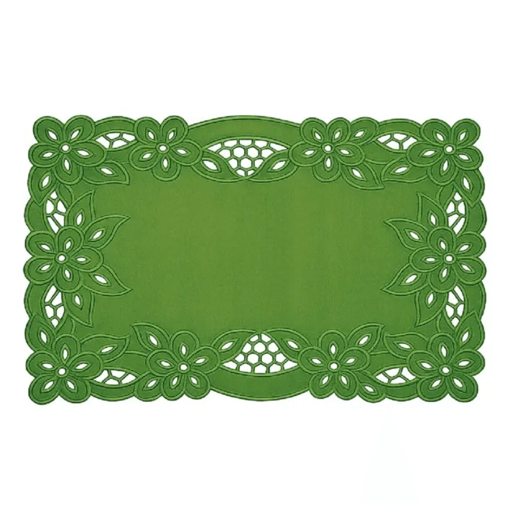 Lugar Americano Rechilie Musgo 35x50cm ArgivaiO Lugar Americano Rechilie Musgo 35x50cm Argivai traz charme e sofisticação para a sua mesa posta. Com tom musgo elegante e acabamento recortado em estilo rechilie, ele adiciona textura e personalidade à composição, criando um visual acolhedor e refinado.Produzido em material resistente e fácil de limpar, é ideal tanto para o dia a dia quanto para ocasiões especiais. Seu design versátil combina com diferentes estilos de louças, deixando qualquer refeição mais bonita e convidativa.
