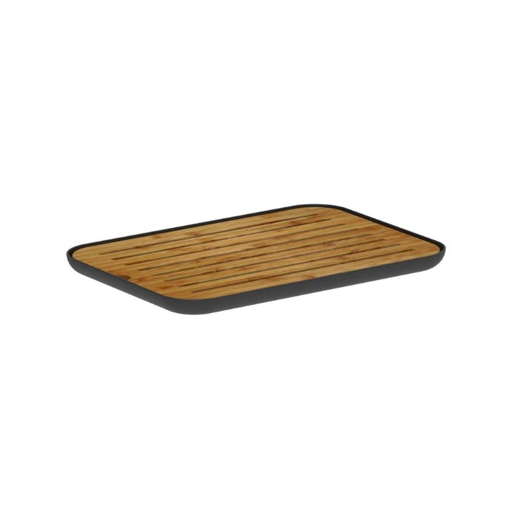 • Tábua de bambu com ranhuras e bandeja coletora de migalhas