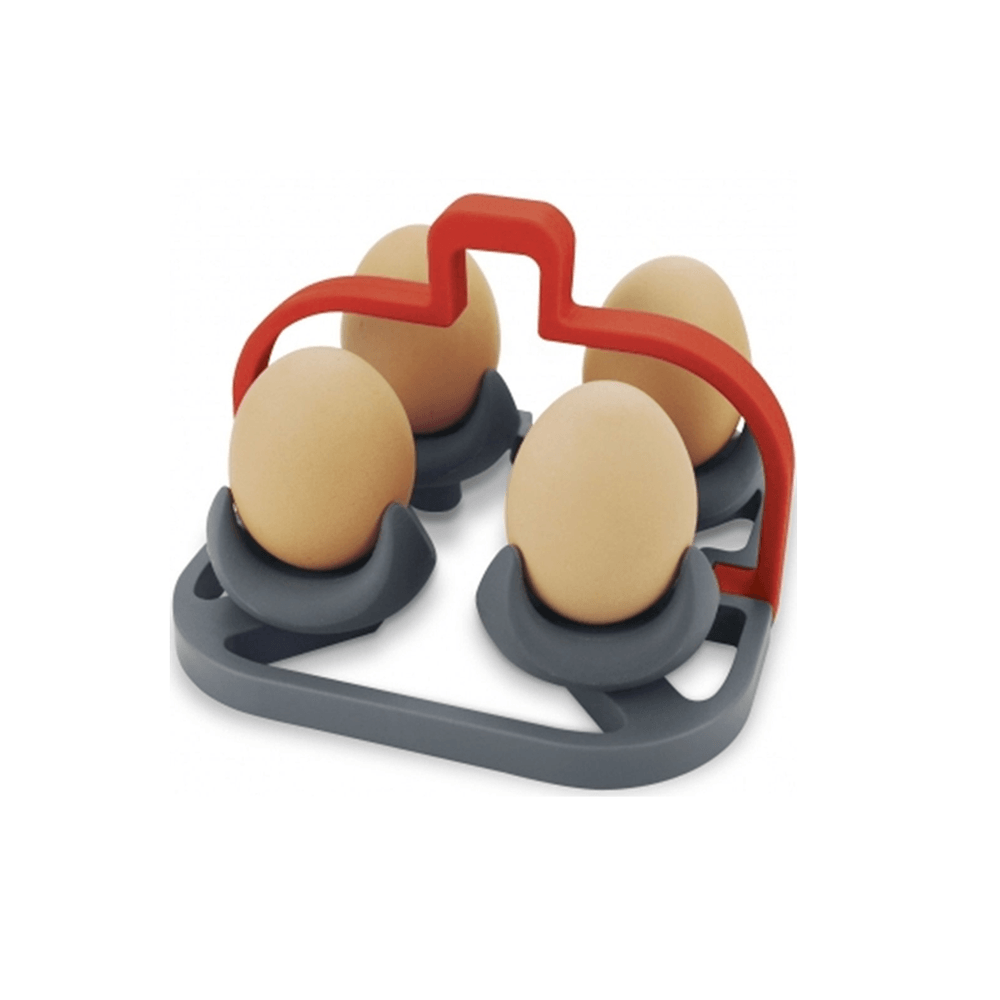 Com este suporte é possível cozinhar 4 ovos ao mesmo tempo. O cabo vertical permite pegar os ovos facilmente quando ficam prontos. O suporte individual é especialmente desenvolvido em silicone com aderência para segurar ovos em 3 pontos, permitindo uma maior superfície de contato com a água e cozinhando os ovos de forma eficiente. O suporte individual, após desconectado permite que os ovos sejam servidos individualmente. A grelha de cozimento em nylon também pode ser usado como descanso de panela.