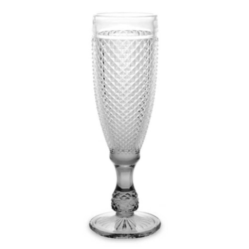 TAÇA DE CHAMPAGNE EM VIDRO TRANSPARENTE LAPIDADO - BTC
