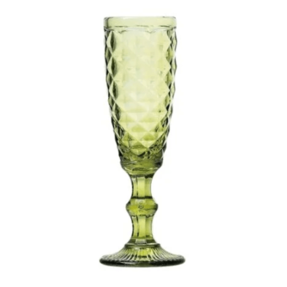 Eleve o nível das suas celebrações com a Taça de Champagne em Vidro Verde da BTC Decor. Com um design clássico e um acabamento lapidado em relevo que remete ao estilo vintage, esta taça não é apenas um item utilitário, mas uma verdadeira peça de decoração para a sua mesa posta.