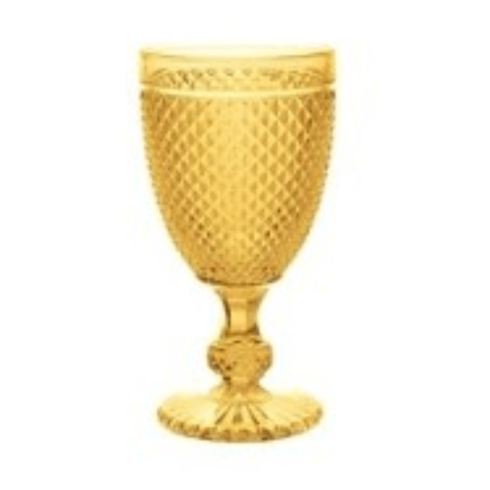 A Taça de Vinho em Vidro Bico de Jaca Amarelo BTC combina elegância, charme retrô e personalidade na composição da mesa. Seu design clássico com textura bico de jaca traz um toque sofisticado e atemporal, ideal para ocasiões especiais ou para valorizar o dia a dia.