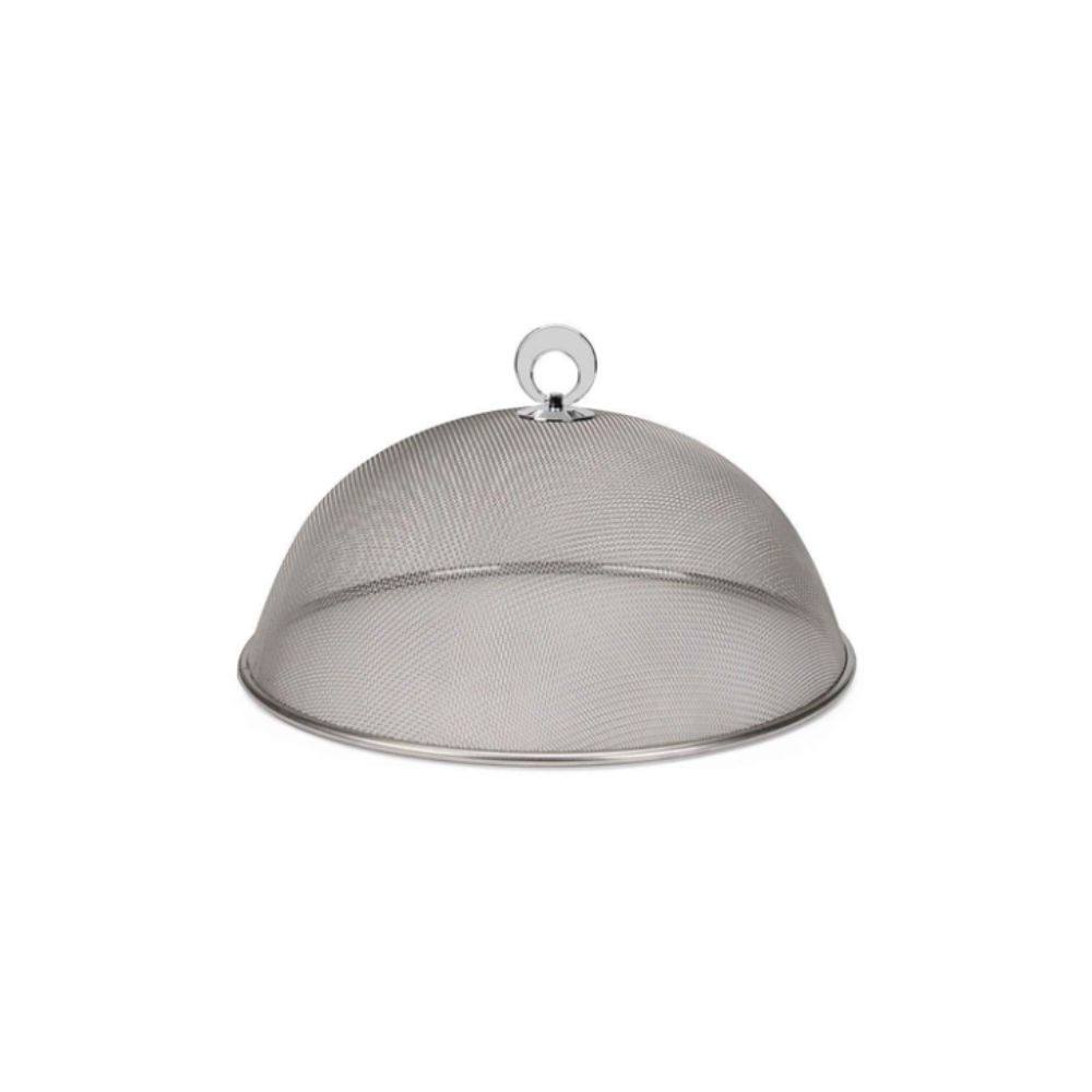 Confeccionada em aço inoxidável de alta qualidade, a tampa possui uma malha fina que impede a entrada de insetos e poeira sem abafar o conteúdo, permitindo a circulação de ar e mantendo o frescor dos alimentos. Seu design clássico em forma de cúpula e o puxador superior facilitam o manuseio e trazem um toque de sofisticação à mesa.